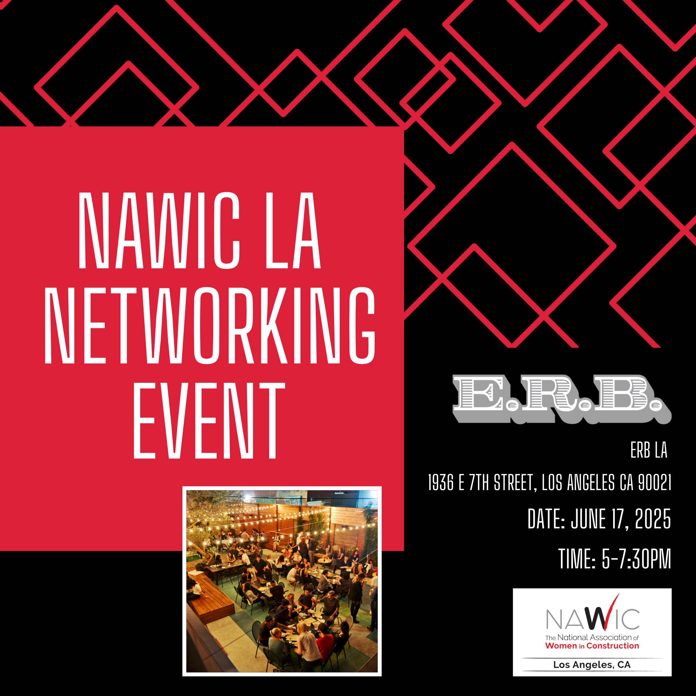 Welcome to the NAWIC LA NETWORKING EVENT! Join us for an evening of networking, drinks, and fun at Everson Royce Bar. This in-person event is a fantastic opportunity to connect with fellow professionals in the industry, share ideas, and build relationships. Don't miss out on this chance to expand your network and have a great time. See you there!