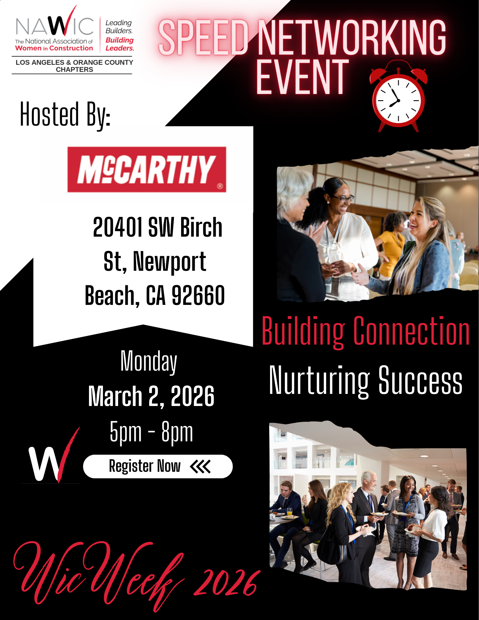Join NAWIC OC for a dynamic Speed Networking Event in celebration of Women in Construction (WIC) Week!